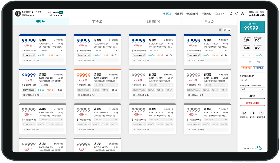 대기/호출페이지에서 대기중인 고객을 확인하고 호출 버튼을 클릭하여 고객님께 호출메세지를 전송합니다.